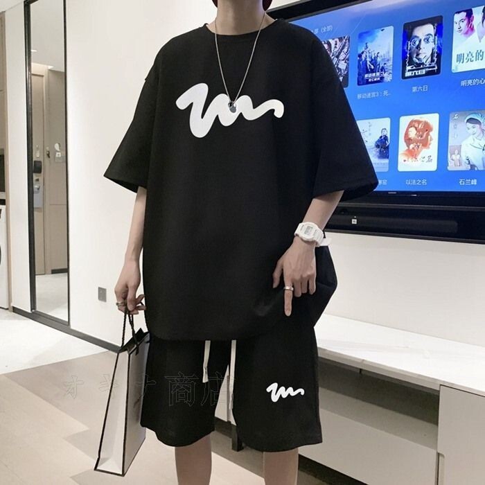 - 上下セット メンズ ゆったり ハーフパンツ Tシャツ 半袖 夏 韓国 セットアップ ファッション ビッグTシャツ 上下 ショートパンツ