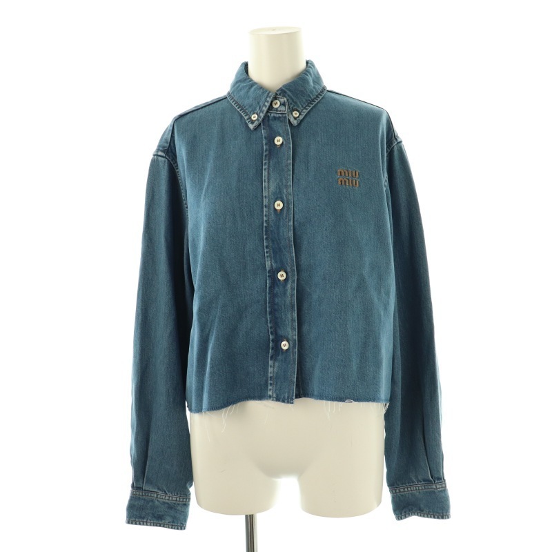 > ミュウミュウ miumiu 24年製 ボックスシルエットカットオフデニムシャツ 長袖 38 インディゴブルー /DO ■OS