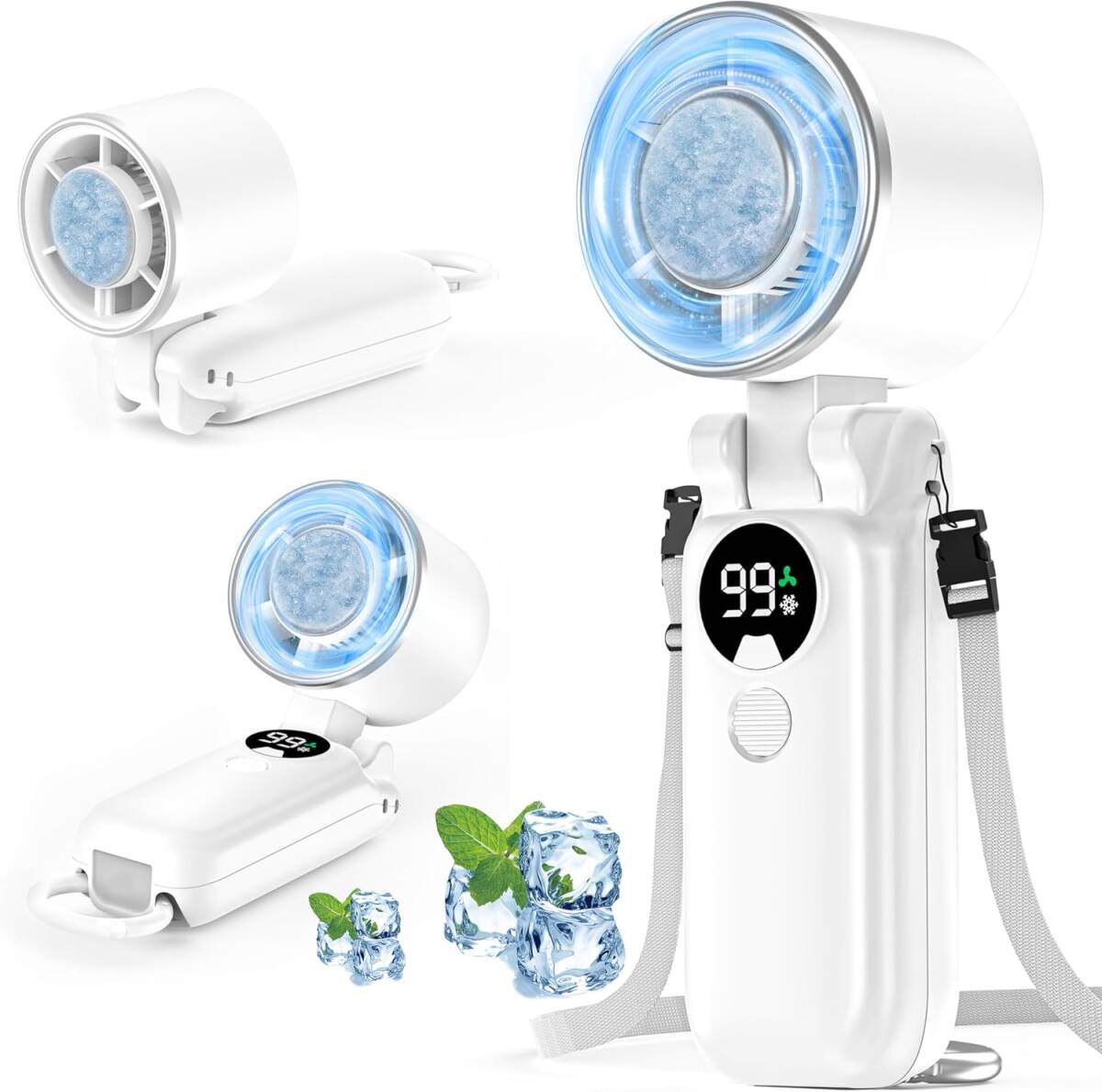 - ハンディフアン 冷却プレート付き 携帯扇風機 ハンディ扇風機 瞬間冷却 160°折り畳み 100段階風量調節