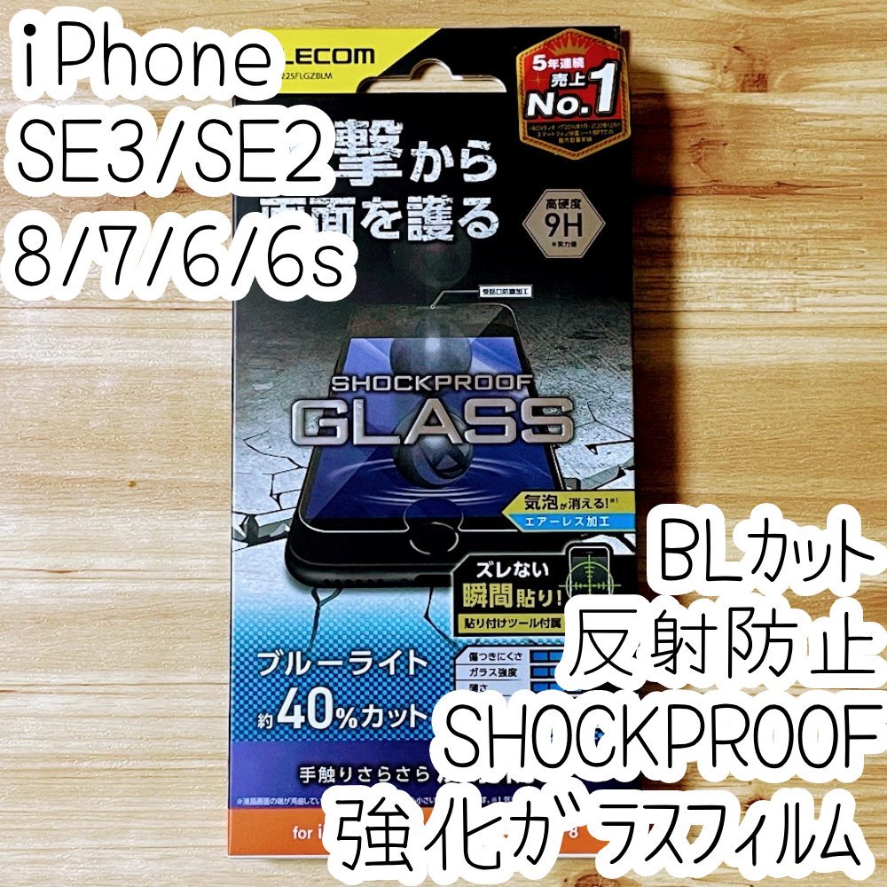 > iPhone SE3 SE2 8 7 6 6s SHOCKPLOOFガラスフィルム ブルーライトカット 反射防止 マット アンチグレア 液晶平面保護 第3世代 第2世代 278