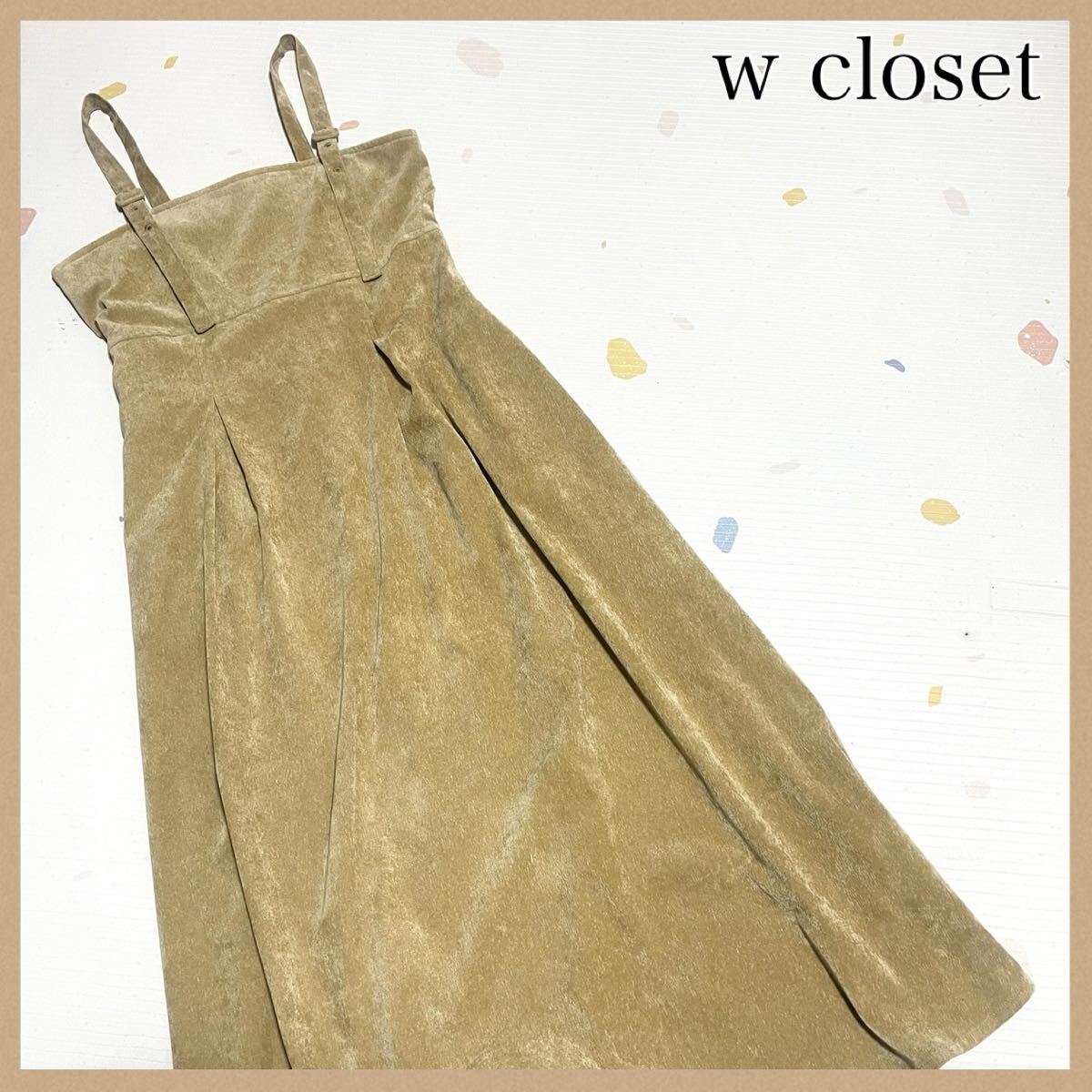 - w closet ベロアキャミワンピース ロング丈 ブラウン 茶色 スカート L