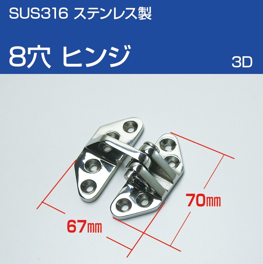 - ステンレスヒンジ SUS316 8穴 立体型 ヒンジ 船 ボート ハッチ 生け簀 蓋 蝶番 金具