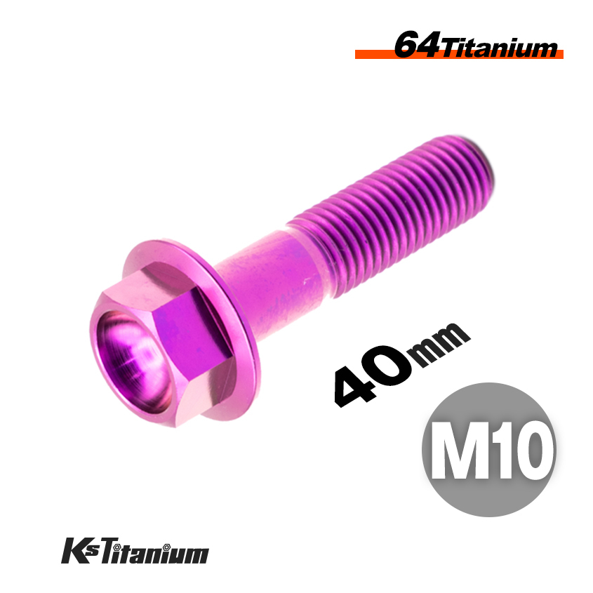 - チタンボルト M10×40 P1.25 パープル 1本売り 64チタン フランジ スレッド 25mm バイク レストア パーツ