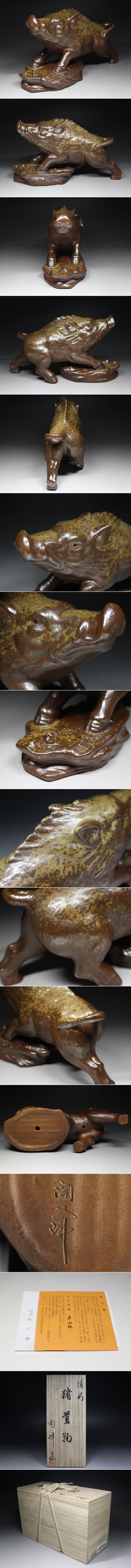 - ◆備前・木村陶峰・猪・置物・干支・亥・床置・縁起物・厄除・栞・共箱◆a8180h