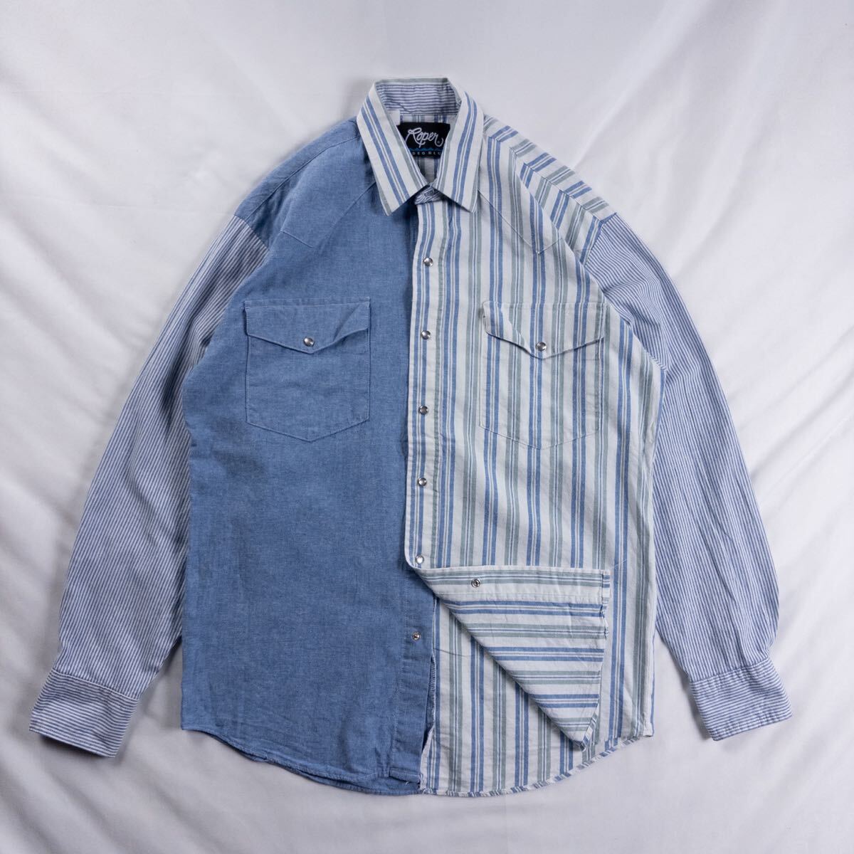 - US Vintage アメリカ製 ROPER コットン 切り替え カスリ シャンブレー ストライプ パールスナップボタン カウボーイ ウエスタン 総柄シャツ