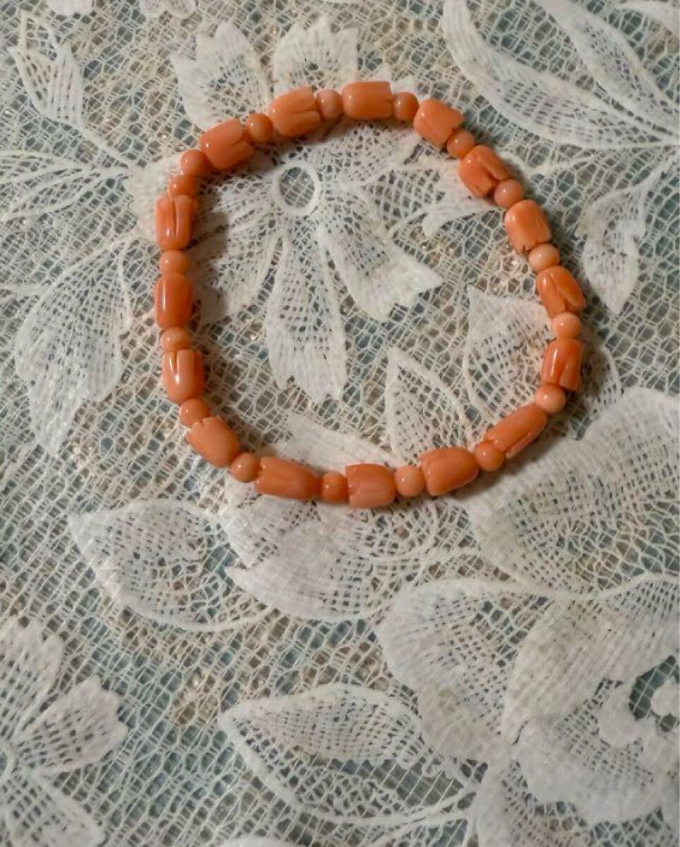 - 本珊瑚 サンゴ さんご コーラル ブレスレット 花 約16cm ハンドメイド