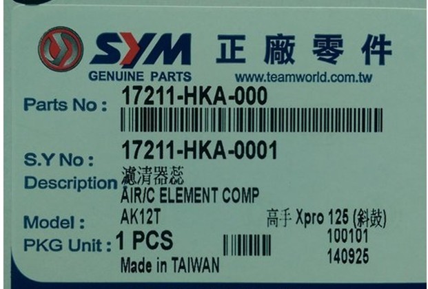 > SYM エアフィルター X'PROファイター150 ニューファイター150ZR GT125 ComBiz125 17211-HKA-000 純正品