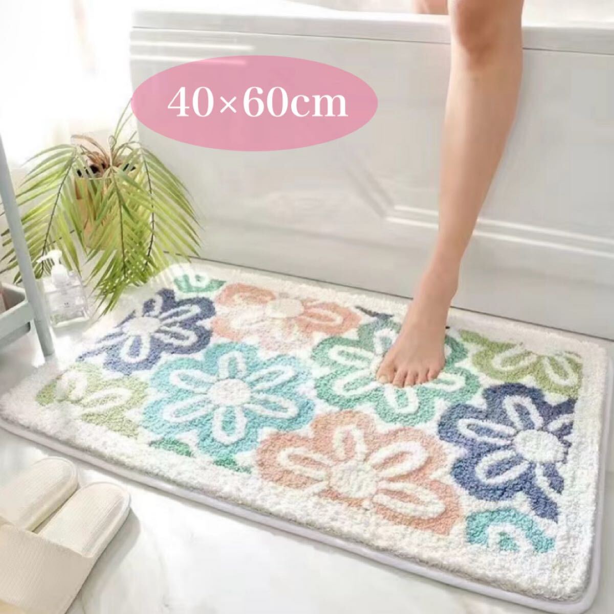 - バスマット 玄関マット トイレマット キッチンマット カラフル 花 さわやか インテリア 滑り止め付 おしゃれ 吸水 マット