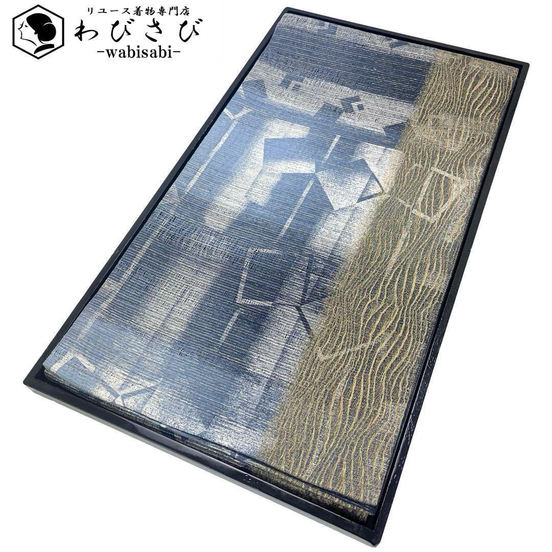 - 袋帯 リバーシブル 幾何科学模様 湊鼠色 金糸 O-4145 着物 きもの kimono 和服 和装 中古 リサイクル着物 【送料無料】