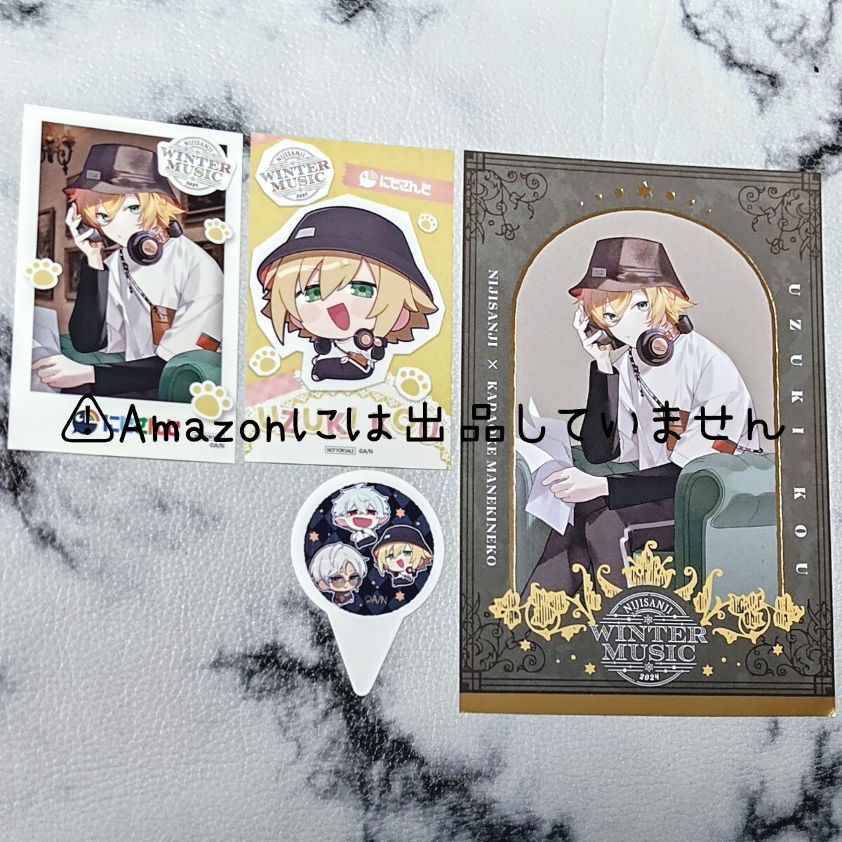 - にじさんじ×まねきねこ Winter Music コラボ ノベルティ 卯月コウ 箔押しポストカード ステッカー (SD柄、等身柄) ピック④