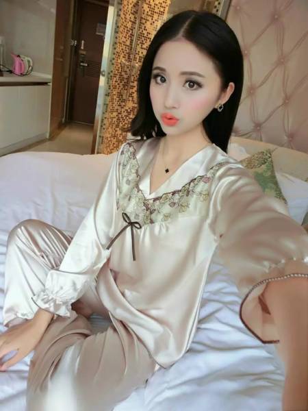 - 送料無料 匿名 長袖 シルク 風 パジャマ ナイトウェア ゴールド M L