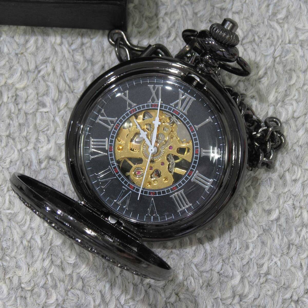 - ●MONOZY アンティーク 手巻き 機械式 懐中時計 メタル メッシュ 両面 スケルトン●