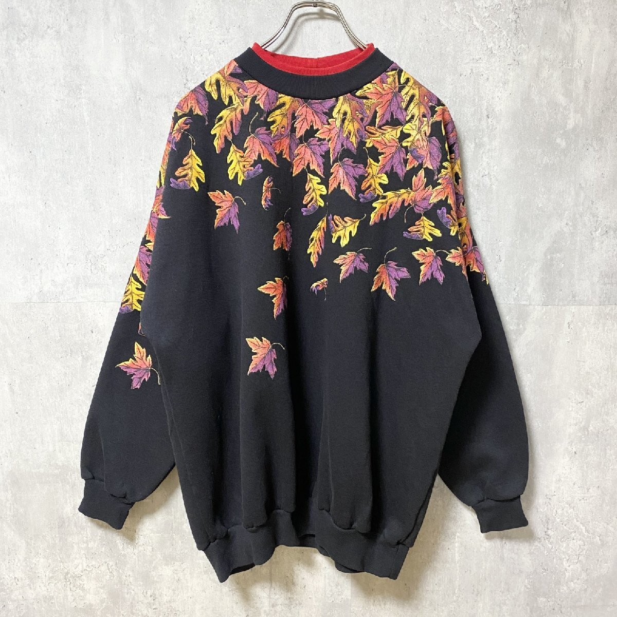 - 古着 used ~90s SUNSCHIN DESIGNS スウェット/トレーナー 落ち葉 もみじ ダブルネック XLサイズ
