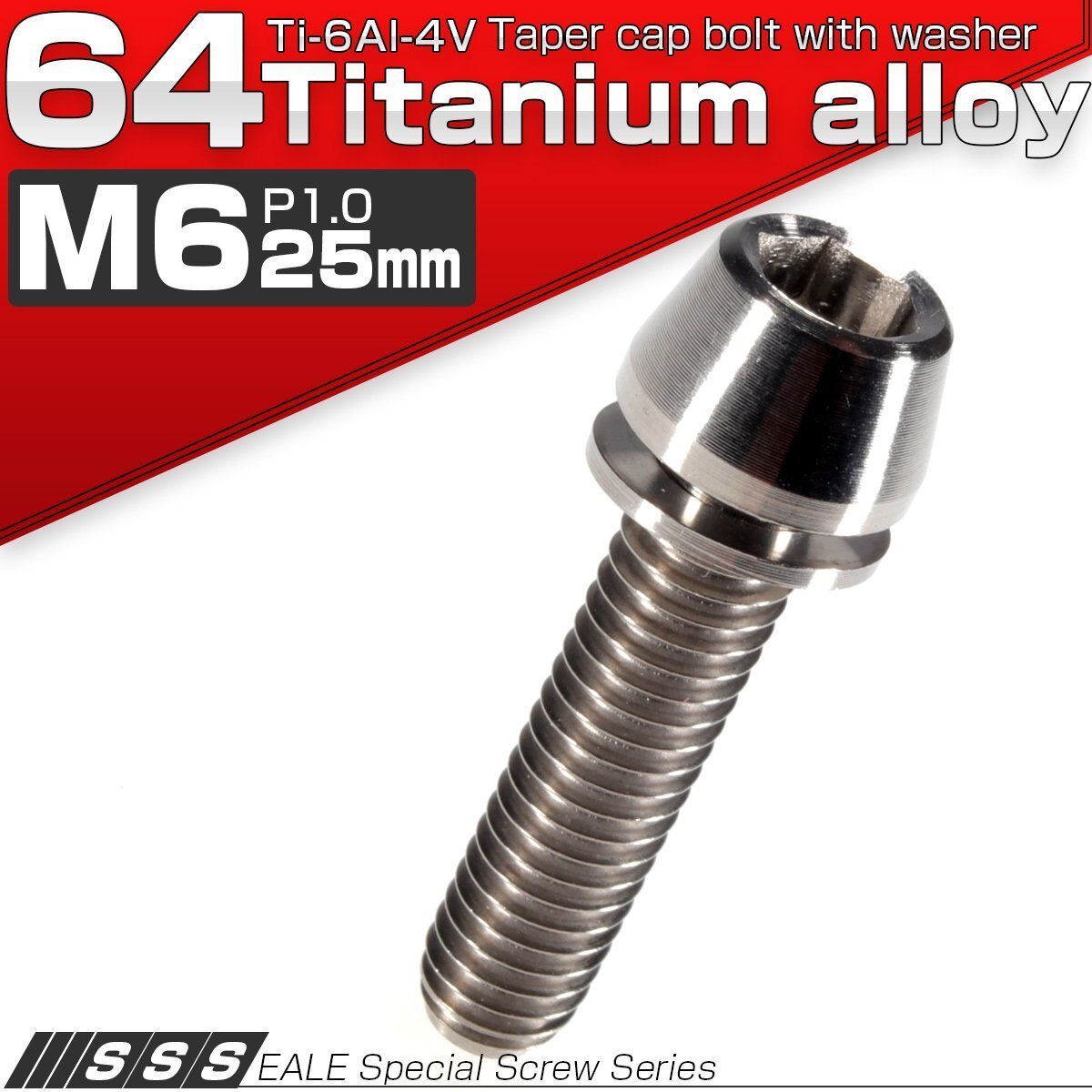 > 64チタン M6×25mm P=1.00 ワッシャー組込テーパーヘッド キャップボルト 平座金付き 六角穴付ボルト チタン原色 JA154