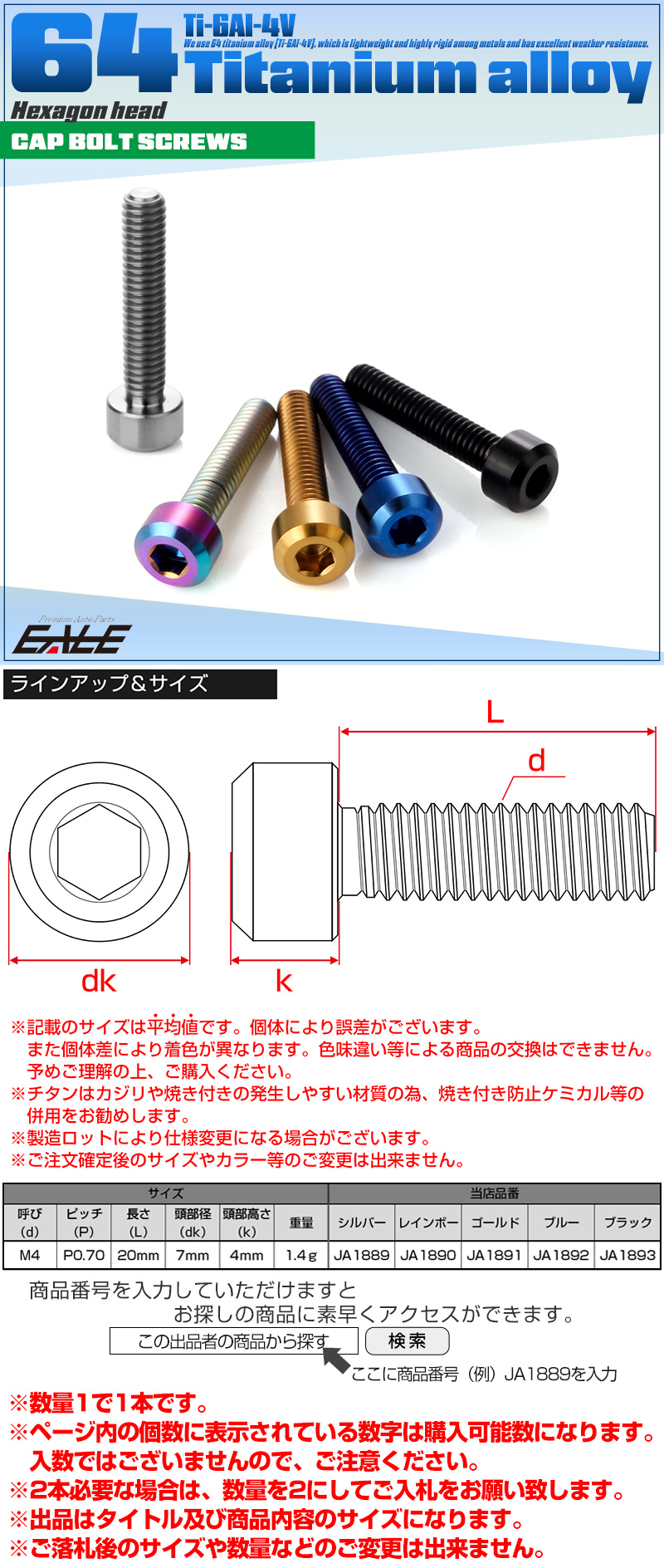 - チタンボルト M4×20mm P0.7 六角穴付き キャップボルト キャップスクリュー デザインボルト ブラック JA1893