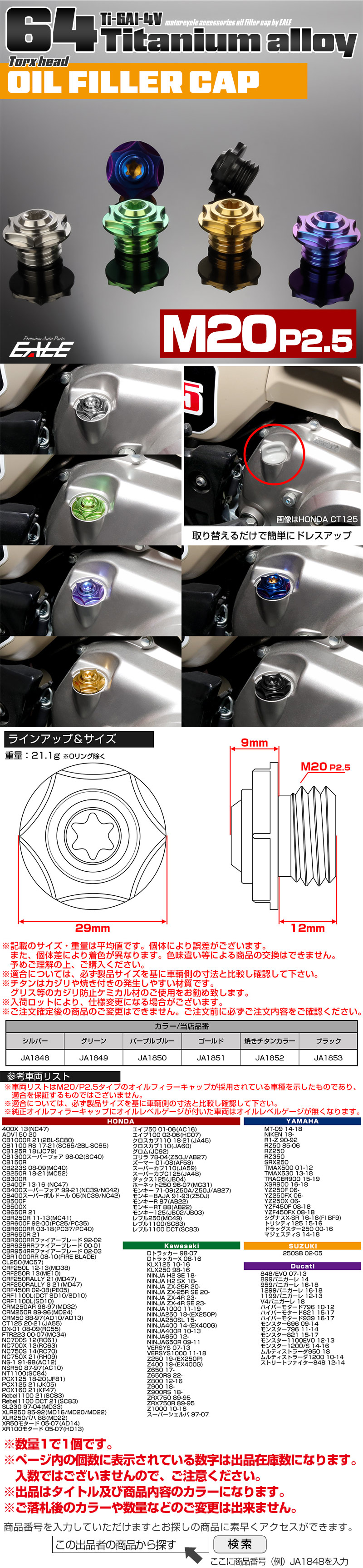 > 64チタン オイルフィラーキャップ M20 P2.5 スターヘッド トルクス穴 汎用 焼きチタン JA1852