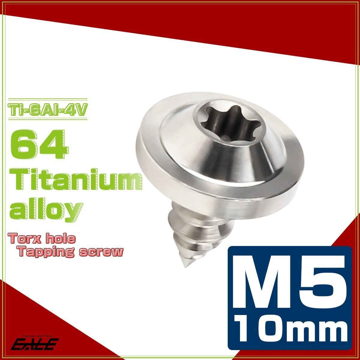 - 64チタン M5×10mm タッピングネジ トルクス穴 フランジ付き ビス シルバー JA1239