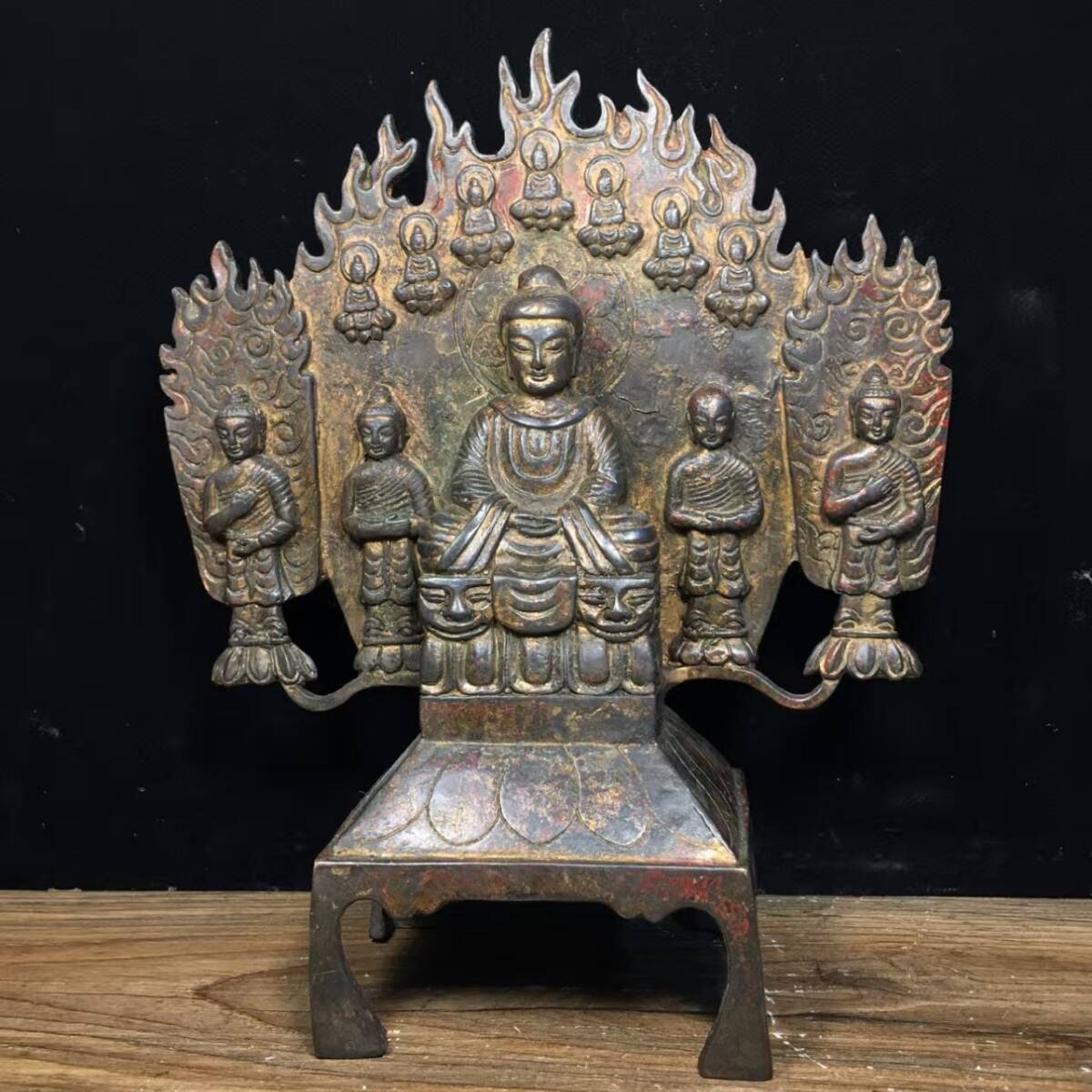- 仏像 時代旧蔵 北魏時代 古銅5連北魏仏仏像 銅製 仏教古美術 細密細工 廃寺旧蔵 廃寺買出品 古置物 中国古玩 9.3