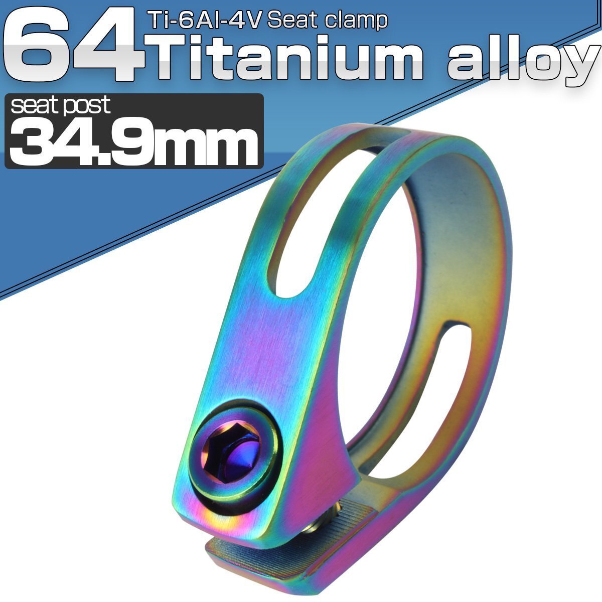- 64チタン製 シートポストクランプ 34.9mm レインボー チタンボルト付き JA483