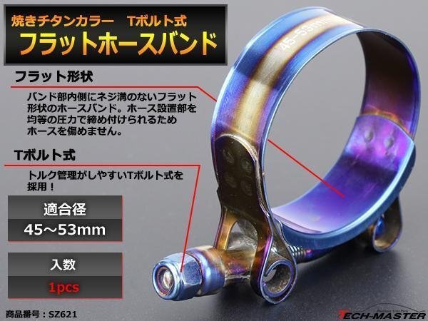 > 焼きチタンカラー 汎用ステンレス フラット ホースバンド Tボルト式 45?53mm 幅19mm 1個 SZ621