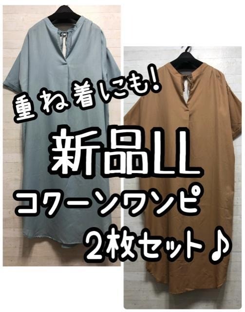 - 新品☆LL♪重ね着カワイイゆったりコクーンワンピース2枚セット♪☆Q192