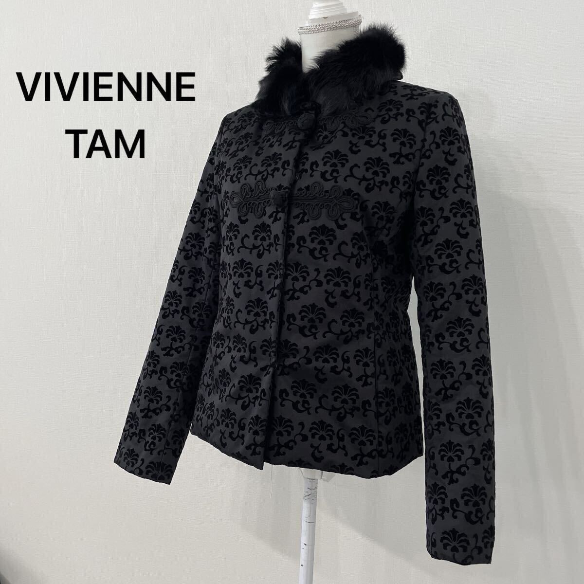 - 【653】美品 ヴィヴィアンタム VIVIENNE TAM 中ジャケット チャイナボタン ファー付き 黒ジャケット ブラック アウター