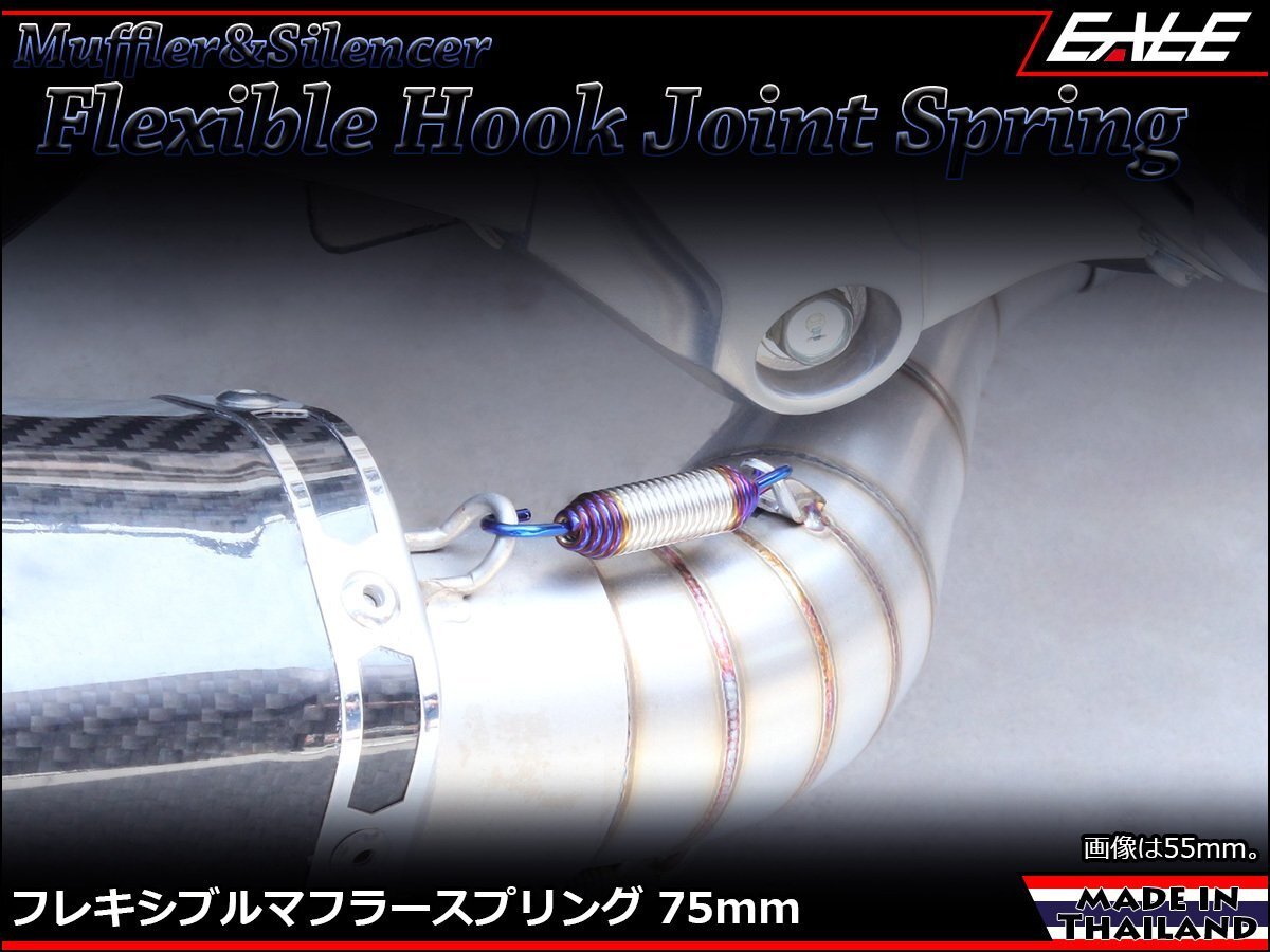 > 75mm マフラー サイレンサー ジョイント スプリング フレキシブル フック フランジとチャンバーの固定にも シルバー&焼チタンカラー TE0045