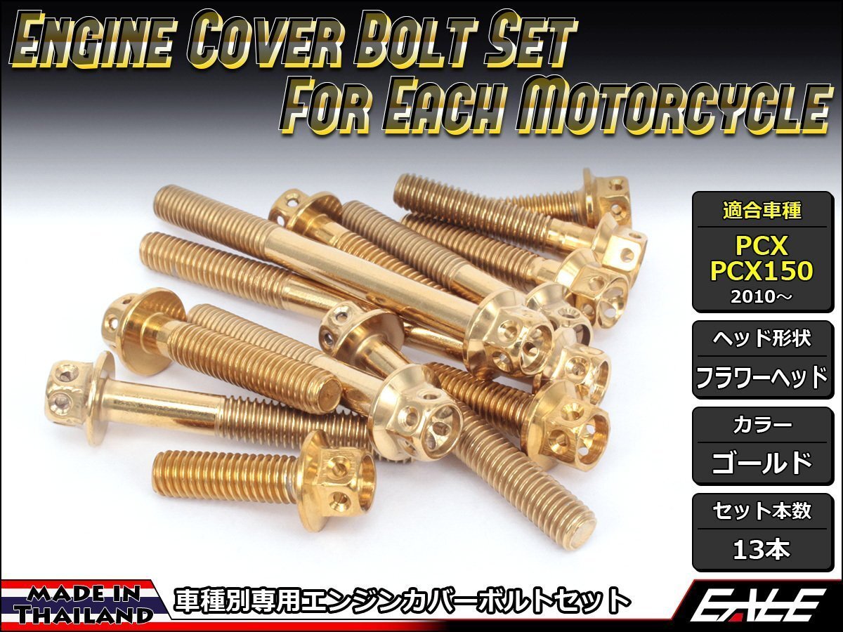 - PCX/PCX150用 エンジンカバー ボルト13本セット ステンレス製フランジ付六角ボルト使用 フラワーヘッド ゴールド TB6055