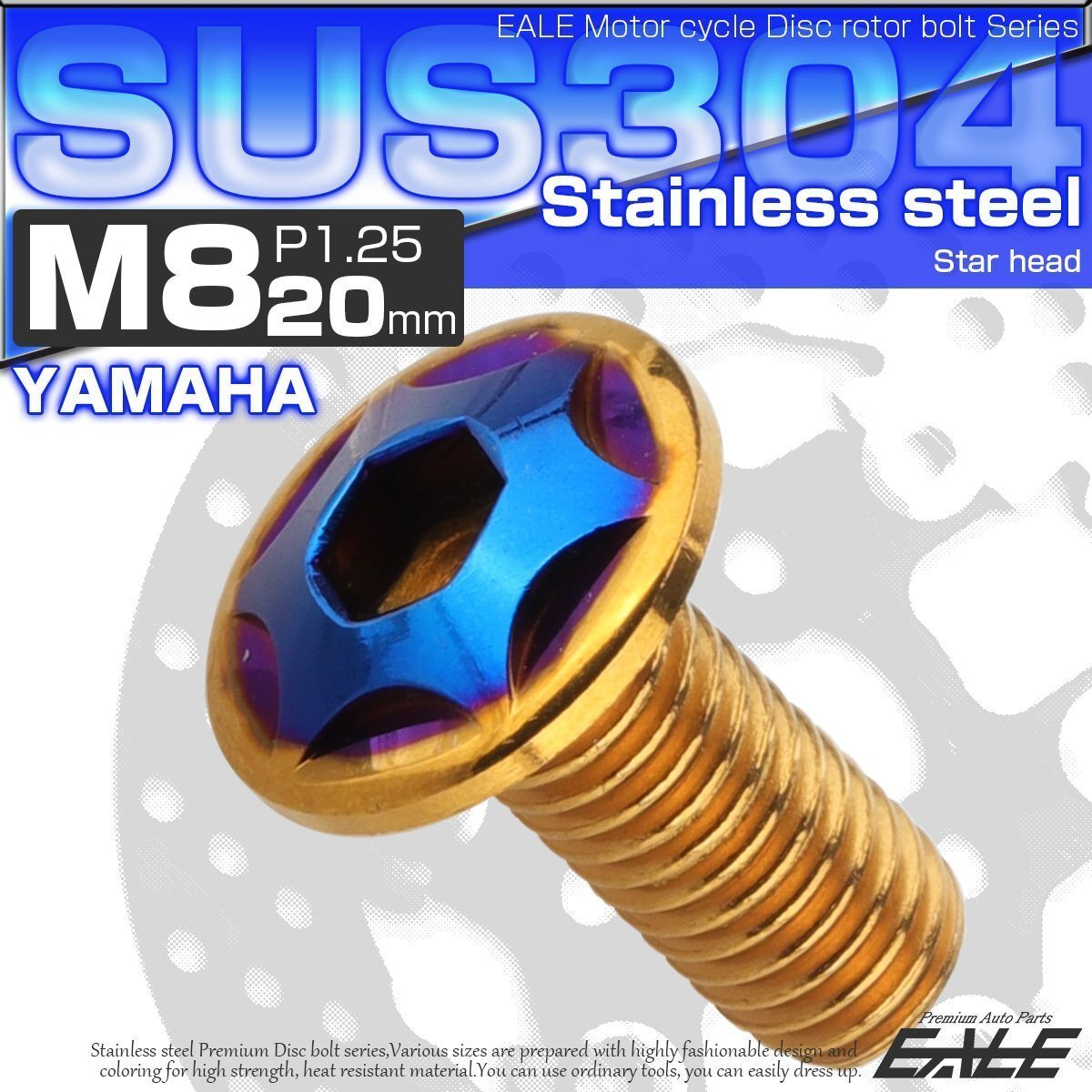 - ヤマハ用 ディスク ボルト M8×20mm P=1.25 ブレーキ ローター SUS304 ステンレス スターヘッド ゴールド/ブルー TD0316