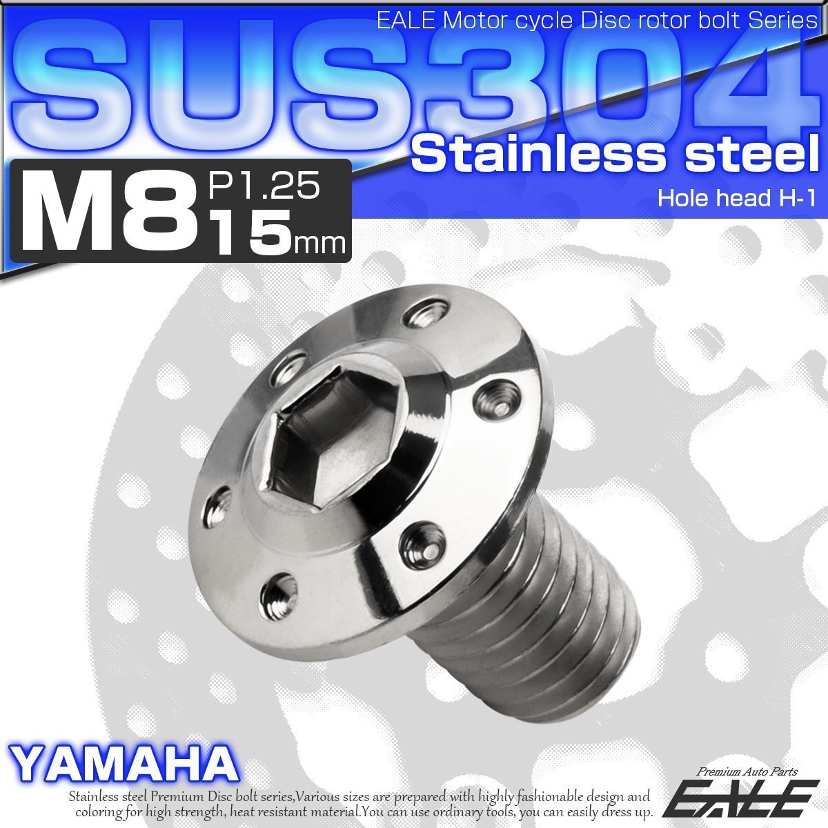- ブレーキ ディスクローター ボルト ヤマハ用 M8×15mm P=1.25 ステンレス 削り出し ホールヘッド H-1 シルバー TD0007