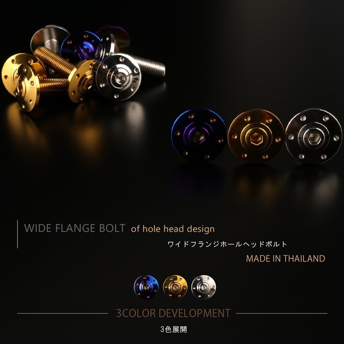 > M10×35mm P1.25 ワイドフランジ ビッグヘッド ホールヘッドボルト ステンレス削り出し SUS304 ボタンボルト 焼チタンカラー TR0311