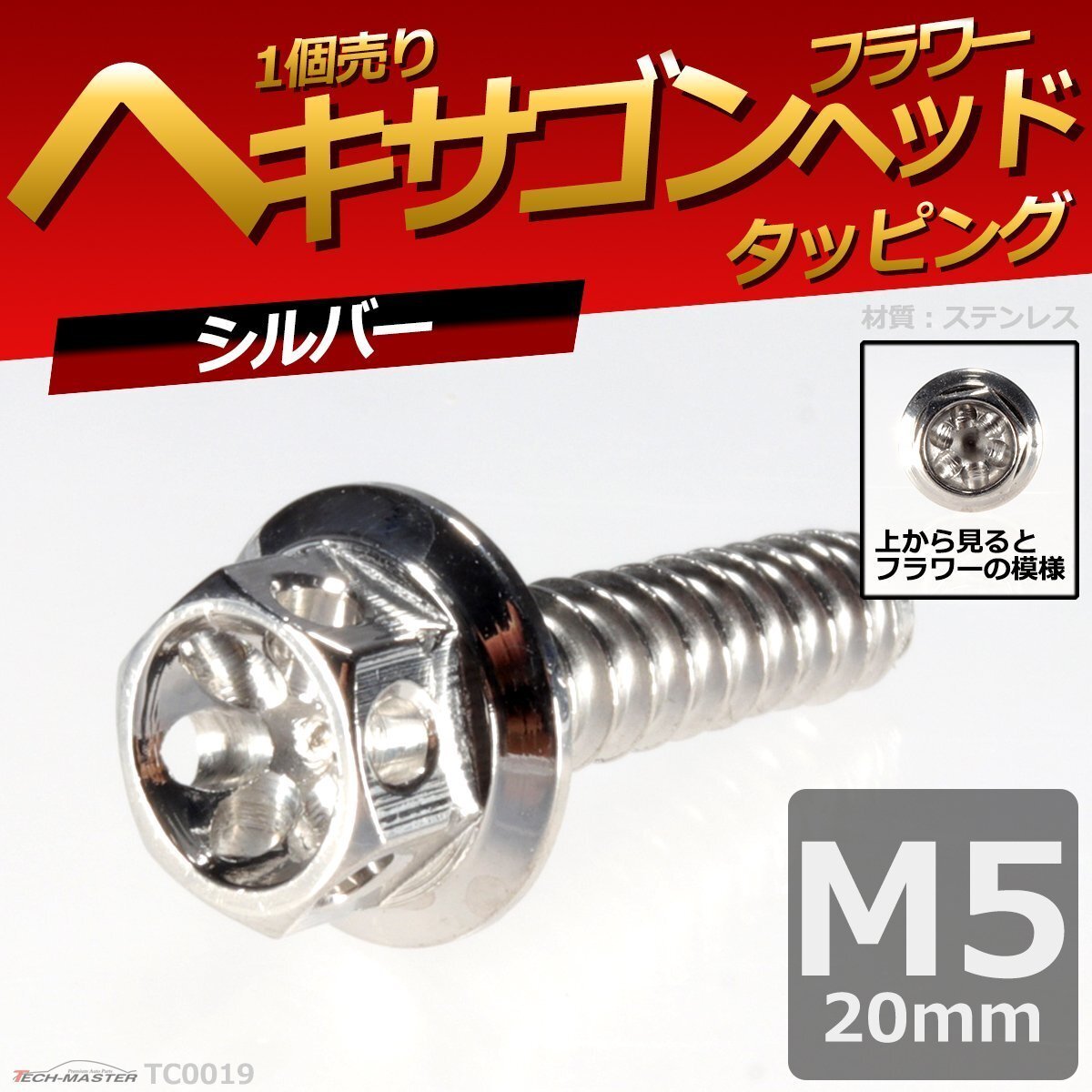 > M5×20mm ヘキサゴンフラワーヘッド タッピングネジ ステンレス 六角タッピングネジ いつもと異なるネジへ シルバー 1個 TC0019