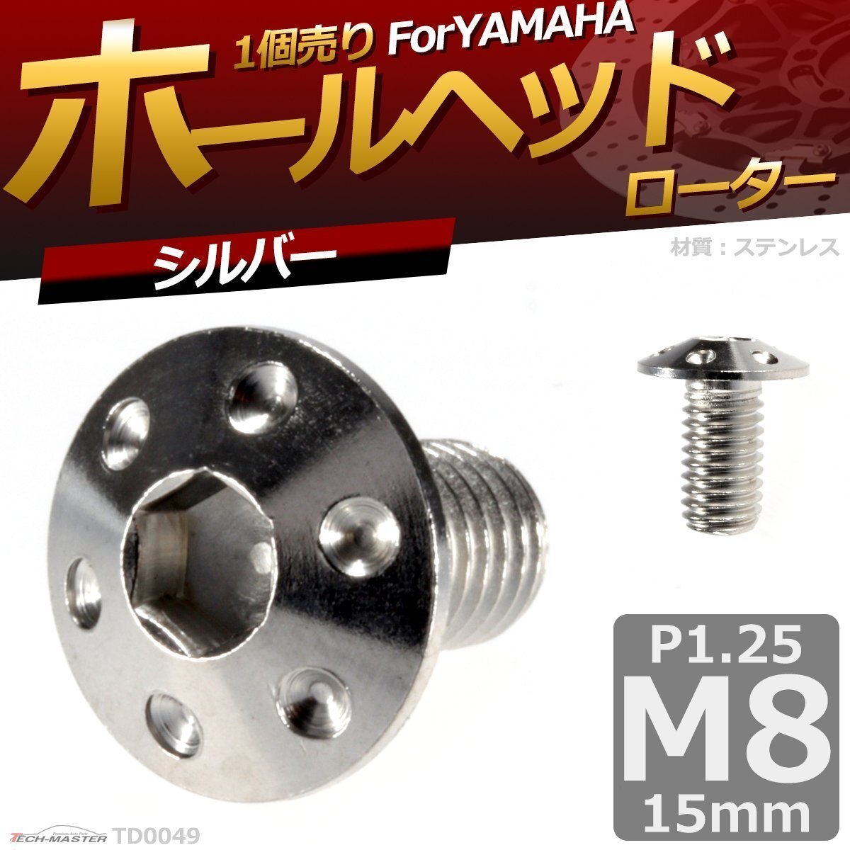 - M8×15mm P1.25 ローターボルト ステンレス ホールヘッド 六角穴付きネジ いつもと異なるネジへ シルバー 1個 TD0049