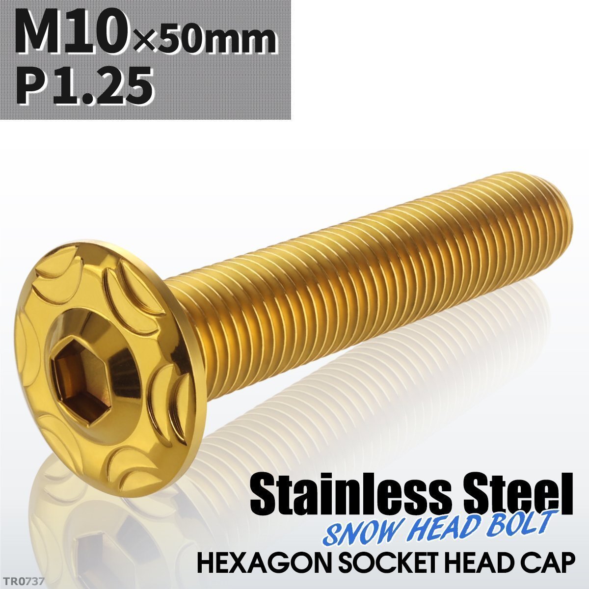> M10×50mm P1.25 スノーヘッド ボタンボルト ステンレス 車/バイク/自転車 ドレスアップ パーツ ゴールドカラー 1個 TR0737