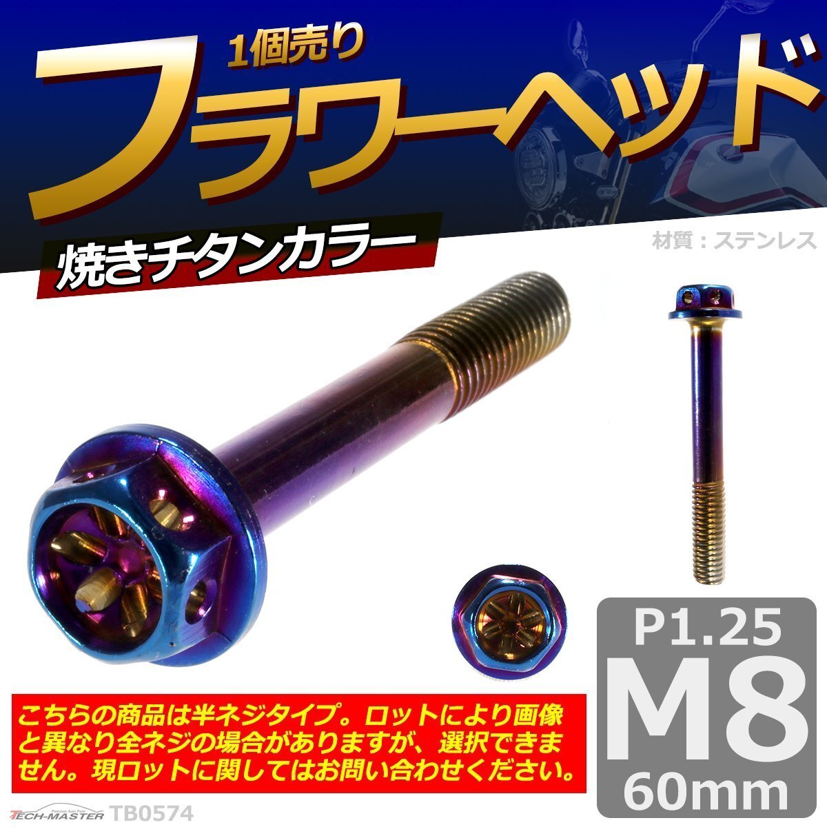 - M8×60mm P1.25 フラワーヘッド 六角ボルト ステンレス 車/バイク/自転車 ドレスアップ 焼きチタンカラー 1個 TB0574