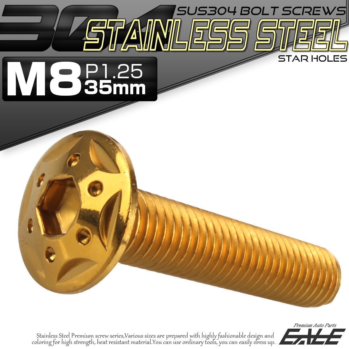 - SUS304 フランジ付き ボタンボルト M8×35mm P1.25 六角穴 ゴールド スターホールヘッド ステンレス ボルト TR0439