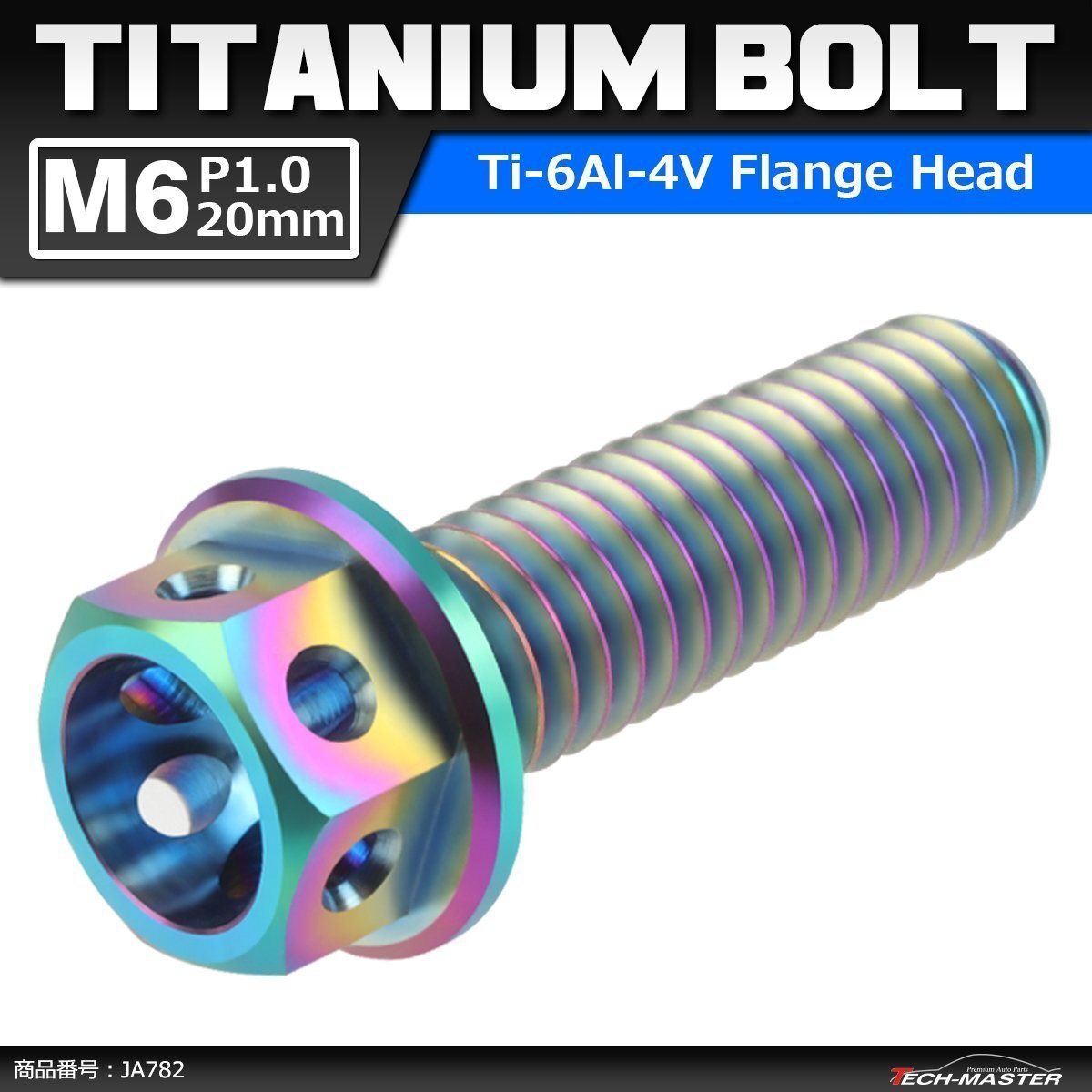 > M6×20mm P1.0 64チタン合金 ホールヘッド 六角ボルト フランジ付き 焼きチタンカラー ライトカラー 車/バイク 1個 JA782
