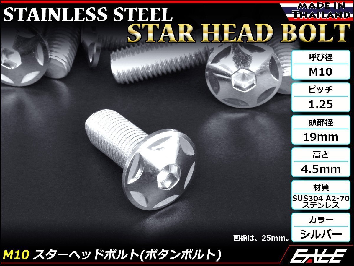 - M10×75mm P1.25 スターヘッドボルト シルバー ボタンボルト ステンレス削り出し SUS304 飾りボルト TR0612