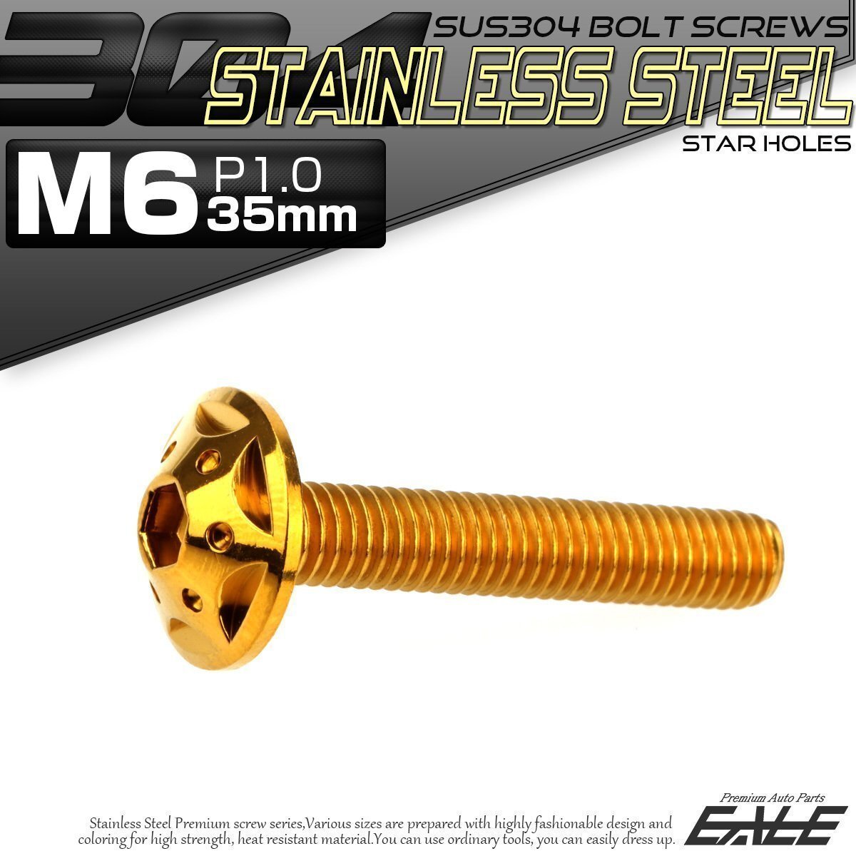 - SUS304 フランジ付き ボタンボルト M6×35mm P1.0 六角穴 ゴールド スターホールヘッド ステンレス ボルト TR0238