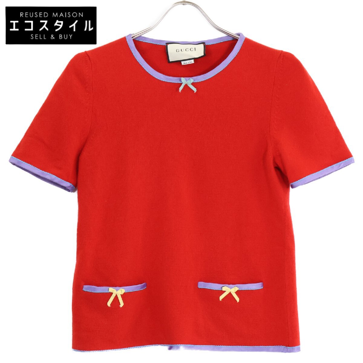 > 国内正規/ GUCCI グッチ 501400 カシミヤ100% リボンデザイン 半袖ニットセーター/ トップス XS レッド レディース