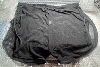 - ノーブランド商品、メンズ、ボクサーパンツ、ブラック半透け紗地、サイドスリットほぼ開、ポリエステル95%、L~XLサイズ、