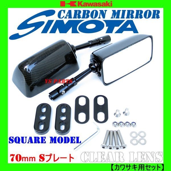 > [超軽量リアルカーボン]カーボンミラー角型/クリアレンズ/S/70mm ZX-10R ZX-6RR ZX-9R ZX-7RR ZXR750[フィッティングプレート/ボルト付]