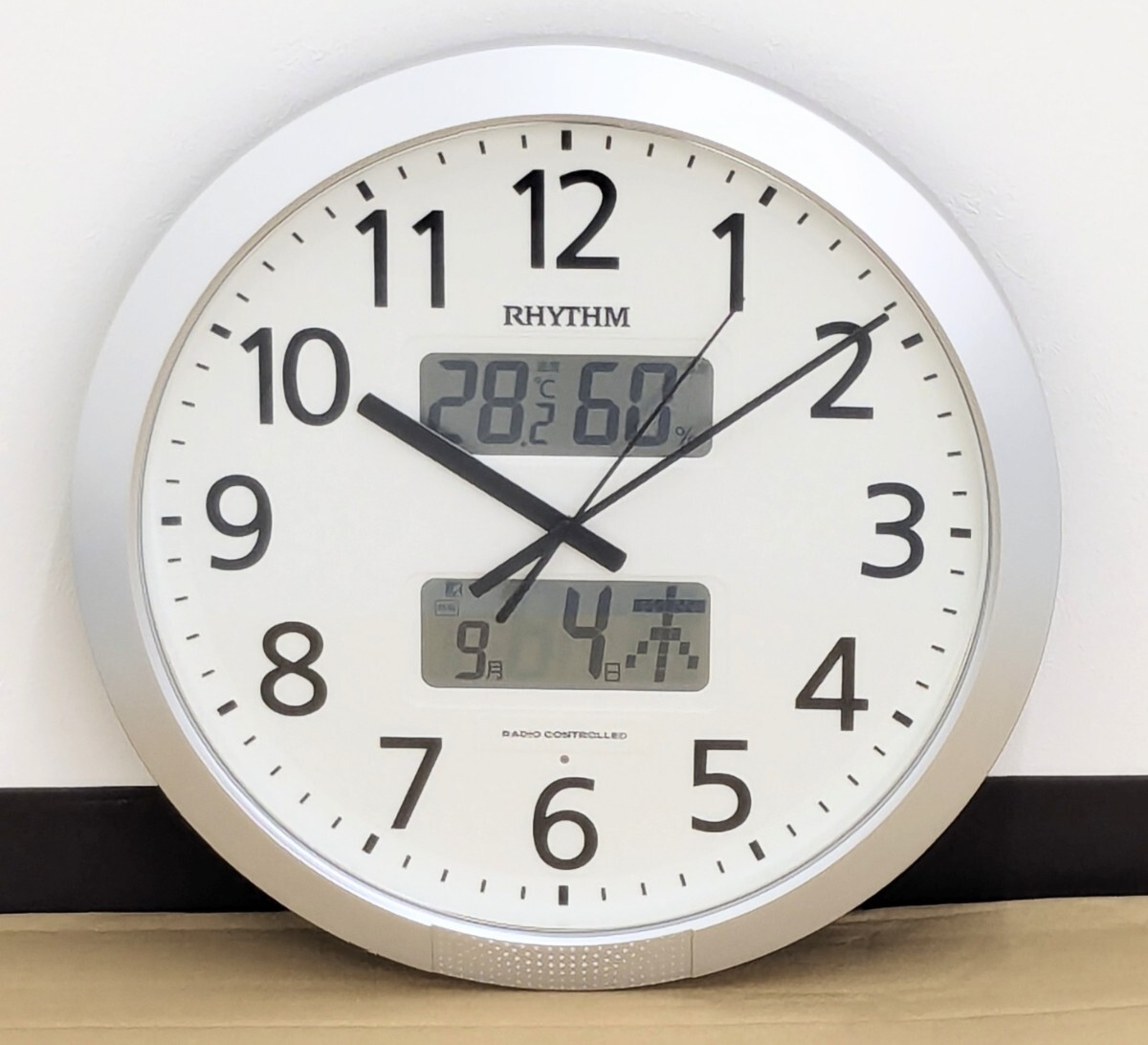 - リズム アナログ 電波時計 4FN404SR 壁掛け時計 RHYTHM シチズン 鐘の音 ラジオコントロール 温度 湿度 カレンダー プログラム CITIZEN