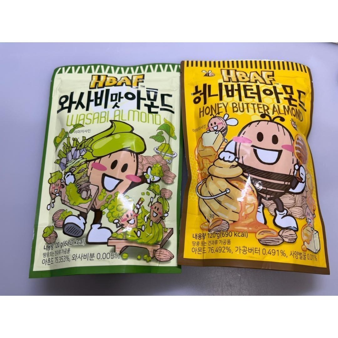 > 《人気2種セット》【韓国人気菓子】HBAF ハニーバターわさびアーモンド120g HBAF ハバフ 韓国お菓子 韓国スイーツ 輸入お菓子