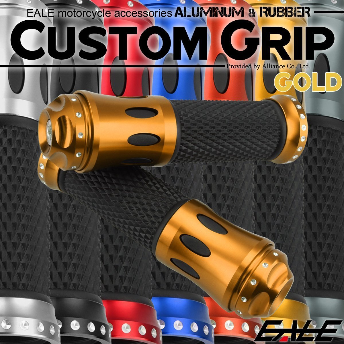 > バイク グリップ ハンドル アルミ ラバー バーエンド付き バランサー 22.2mm用 ゴールド 左右セット カスタム ドレスアップ S-579-G
