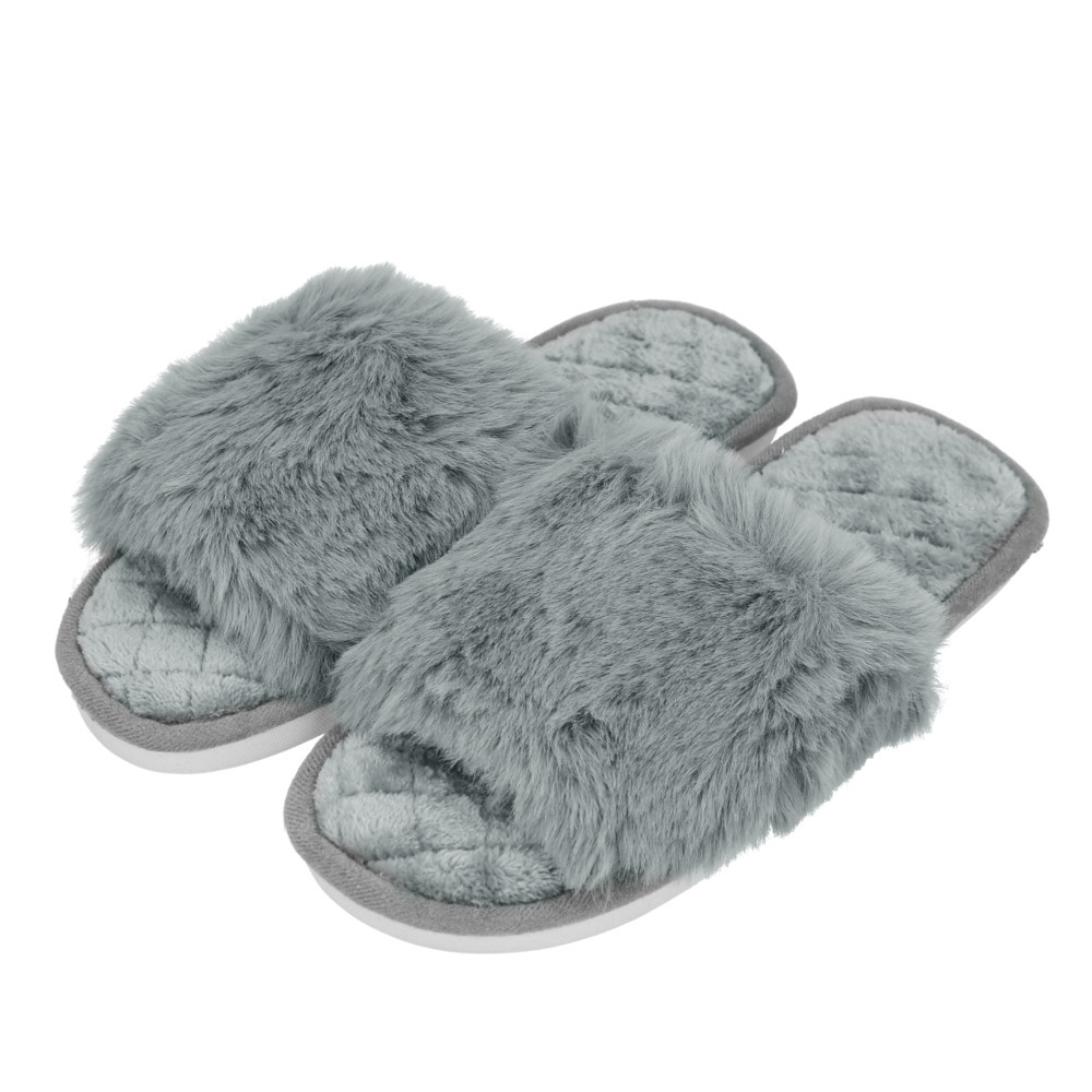 - ☆ グレー ☆ 36/37(23~23.5CM) スリッパ おしゃれ 冬用 通販 ルームシューズ 冬 フェイク ファー レディース もこもこ あったか 大人 可