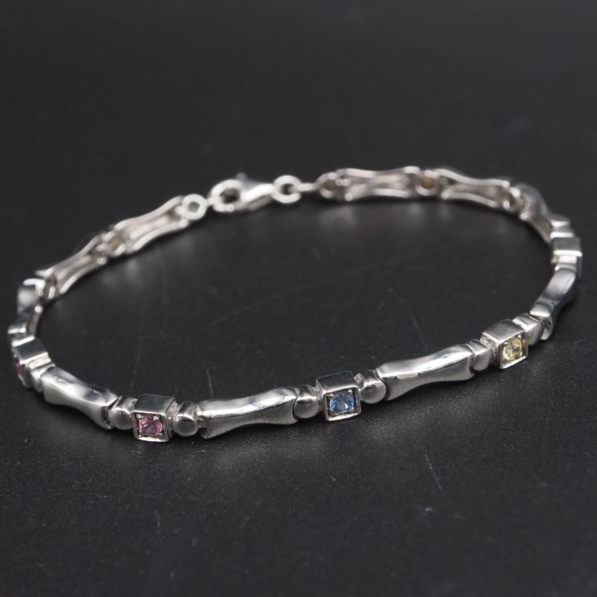 - C798 コランダム系ストーン 925刻印 ブレスレット マルチカラー デザイン シルバー