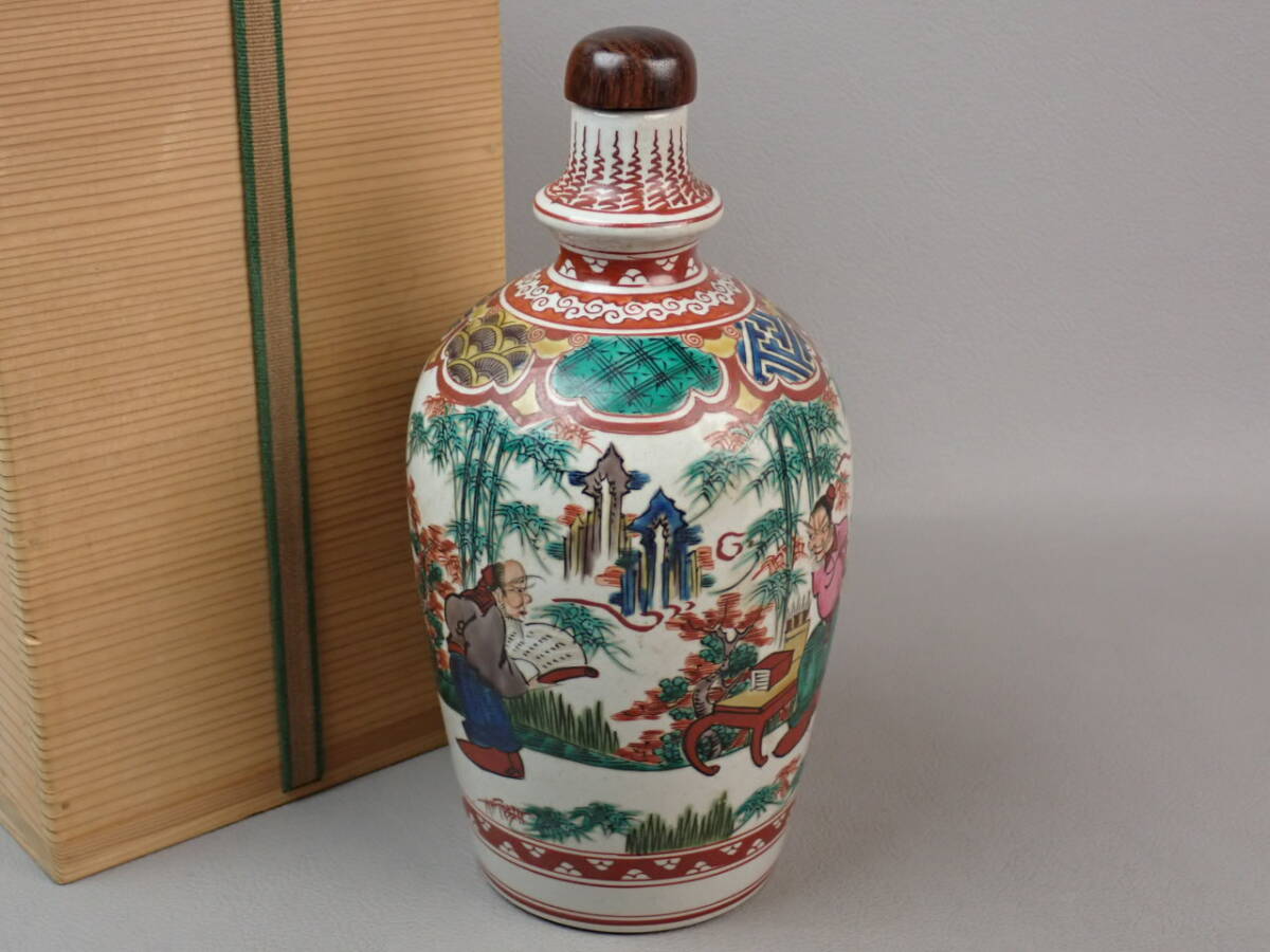 > 【骨董・茶道具】★九谷焼 大明成化年製銘★★赤絵竹林賢人徳利 go057vb 花瓶 花道 華道