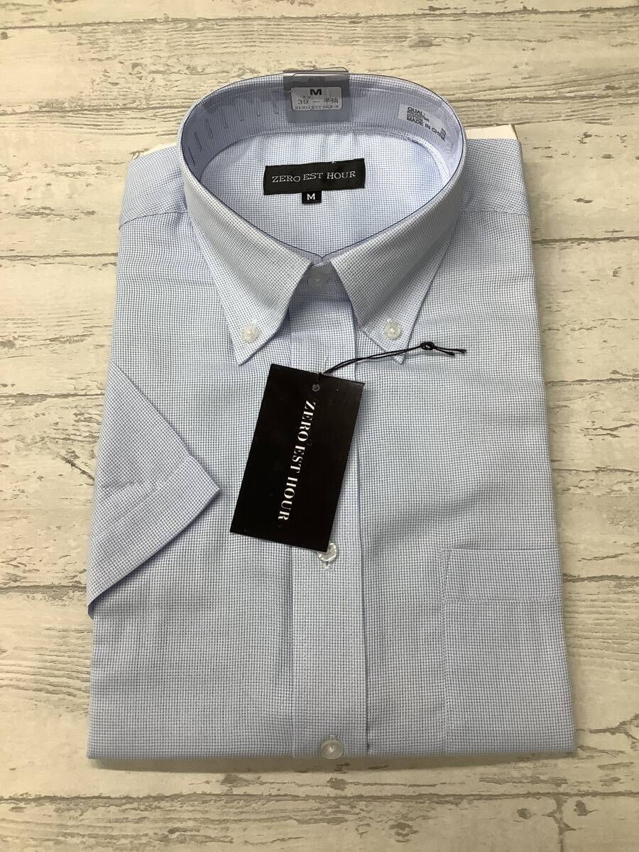 - 新品未使用 39Mサイズ半袖 ★ボタンダウン カッターシャツ ストレッチ素材 ★ブルー系