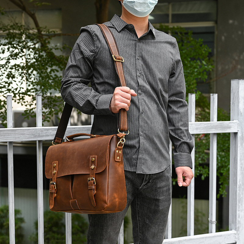 - 本革ビジネスバッグ メンズ ショルダー付き 2WAY レザー ブリーフケース 通勤 収納多い A4対応 斜めがけ可 仕事用 レトロデザイン